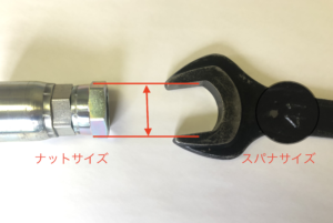 スパナで締める部分の直径を測っていただくことで、口金具サイズを特定できます。