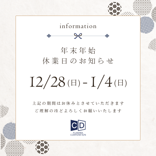 【休業期間】 2025年12月28日(日)~ 2026年1月4日(日)